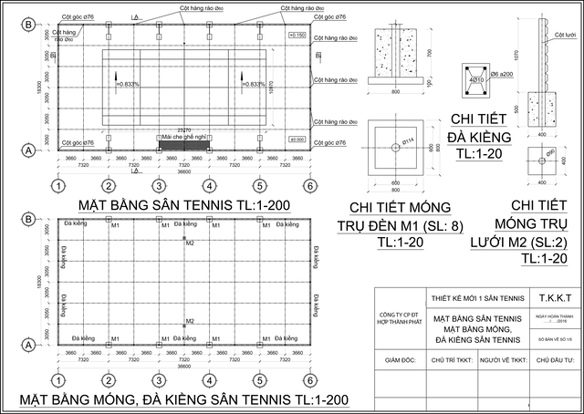 - Diện tích sân được thi công nhiều dùng cho CLB chuyên về tennis: dài 17.07 x 34.77m.